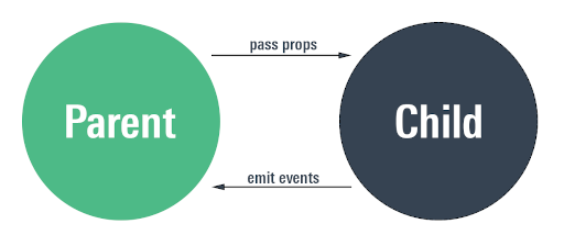 - émission d’événement depuis un composant enfant vers parent avec this.emit('evenementperso'), puis on utilise l'evenement comme les événements standards