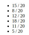 </ul>Ce code va produire une liste HTML, contenant une note par point de liste :