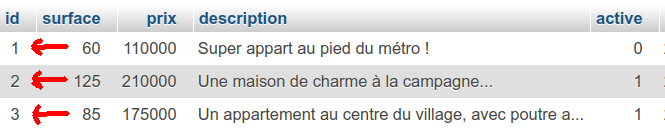 Par exemple sur notre table "annonce", on pourrai avoir les colonnes prix, surface, emplacement géographique, etc.. Et chaque ligne correspondrai à un bien immobilier :