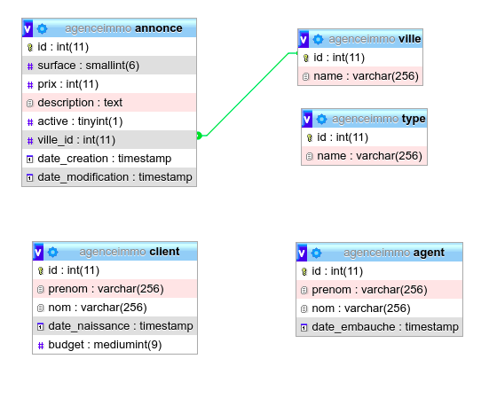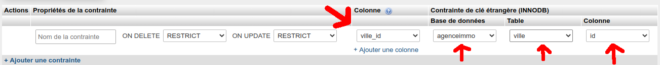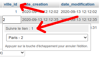 On peut donc écrire ceci, en français : le champ ville_id de la table annonce est relié au champ id de la table ville.