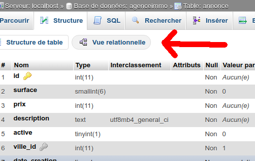 2 - dans votre table annonce, ouvrez la vue relationnelle dans l'onglet structure