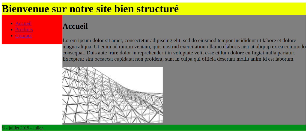 - un pied de page (footer), qui fait toute la largeur