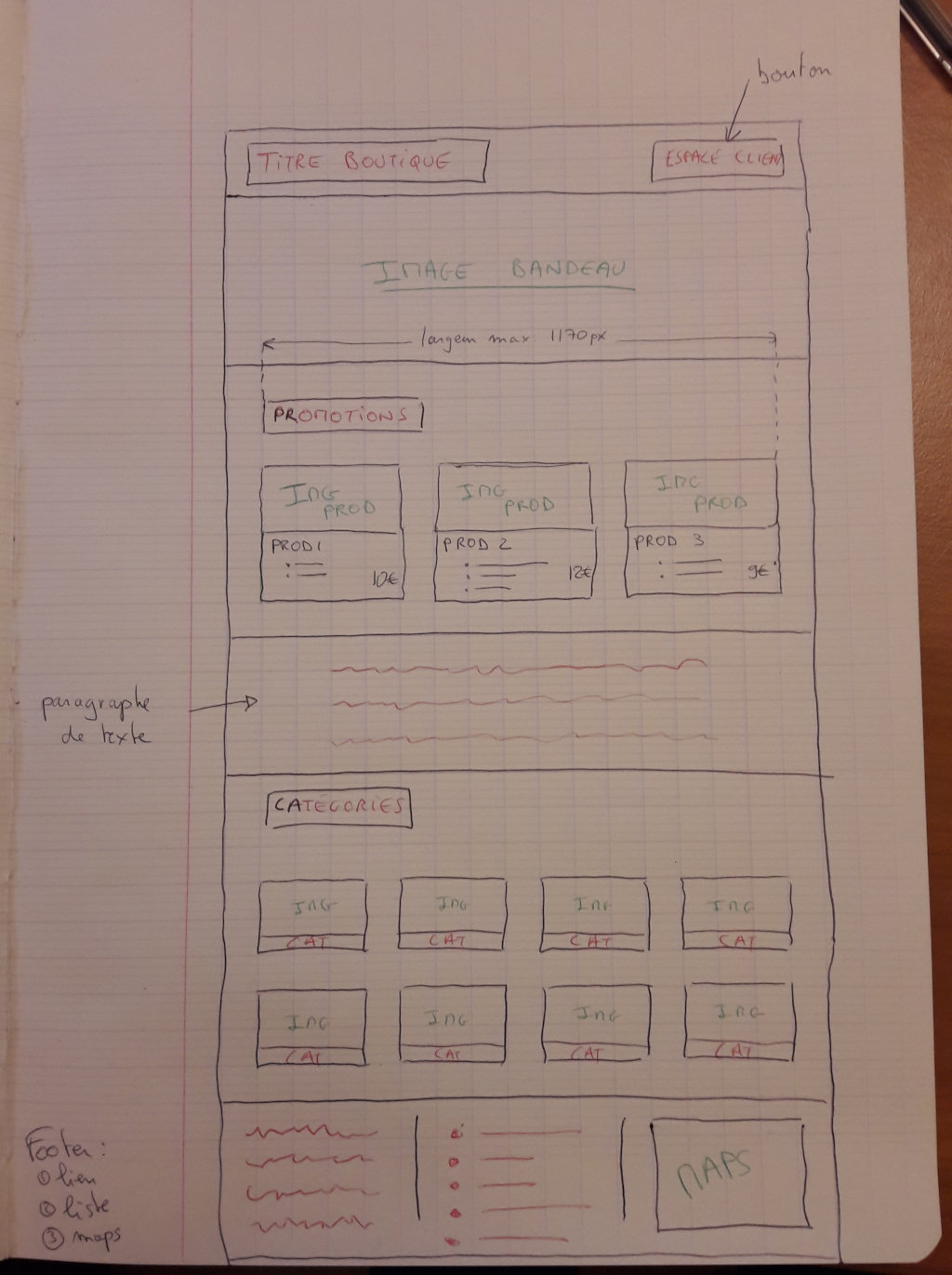- le paragraphe de texte et le footer sont des mix entre les dimensions full-width et conteneur