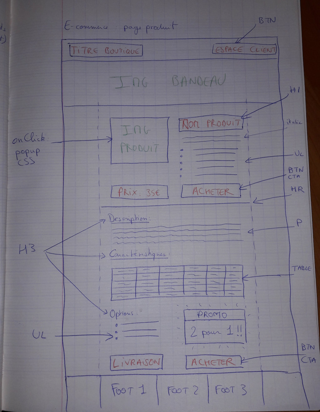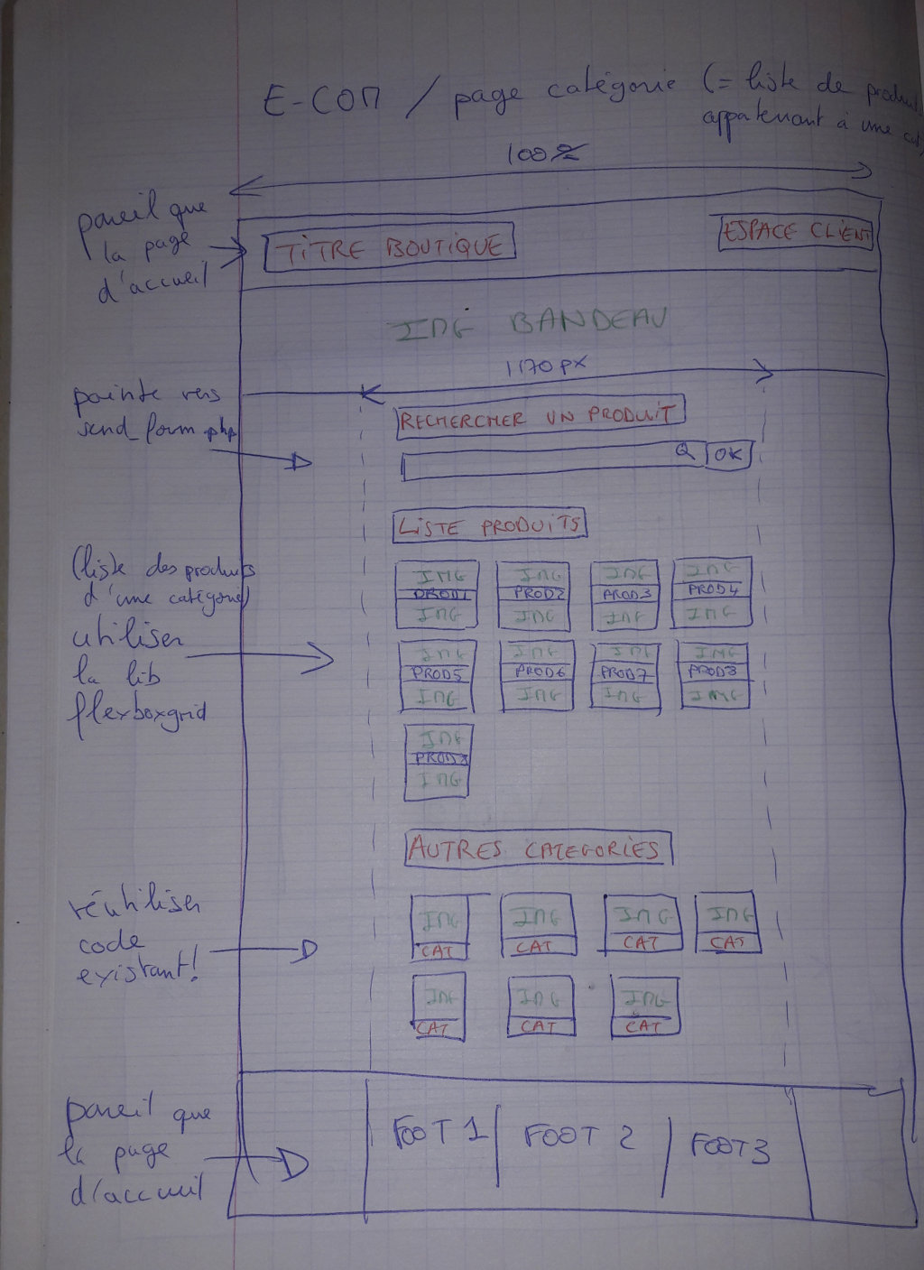 Cette page est la page d'accueil de votre e-commerce, faites en sorte de coller au plus près des contraintes de la maquette :