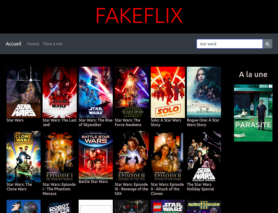 Pour cette première version, concentrez vous sur les fonctionnalités essentielles de l'application. Essayez d'utiliser au maximum les bonnes pratiques, mais concentrez-vous d'abord sur le fonctionnel. Un deuxième exercice viendra ajouter quelques fonctionnalités, et quelques contraintes techniques (FakeFlix v2), car un logiciel n'est jamais "fini", et vous devez être assez à l'aise pour modifier un code déjà fonctionnel. Pensez bien à donner un maximum de souplesse à votre code pour pouvoir y rajouter les futures fonctionnalités...