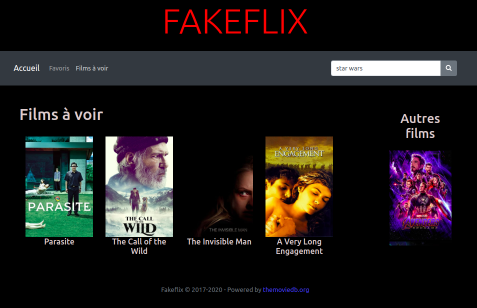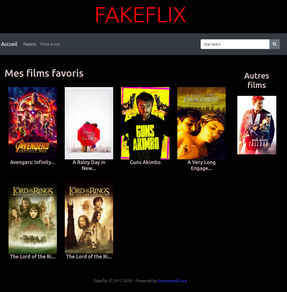 Liste tous les films que vous avez marqué comme favoris. Et on rajoute le carrousel de découverte de nouveaux films.