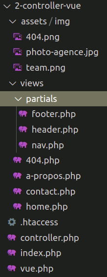 - faites en sorte que les méthodes du contrôleur appel la méthode load() de la classe Vue pour construire vos page en allant piocher dans les différents fichiers de vues disponibles